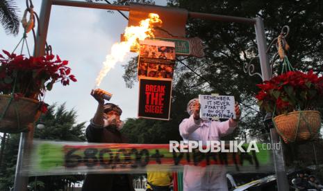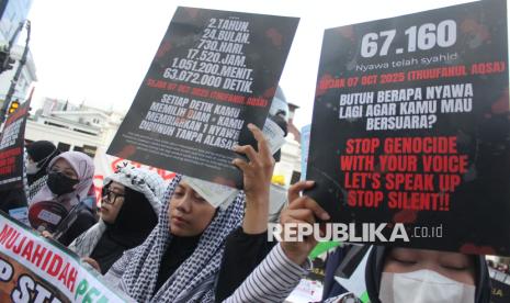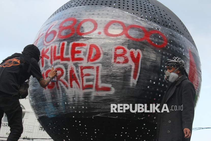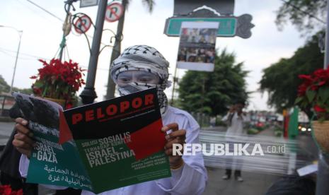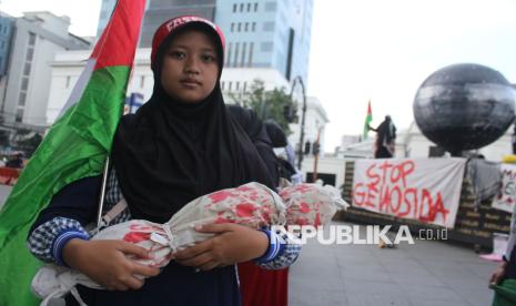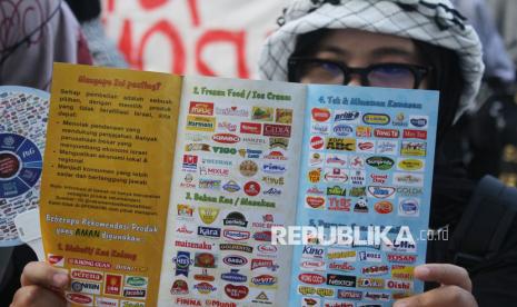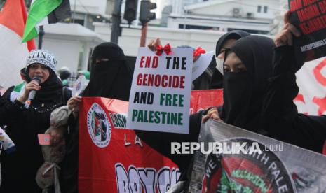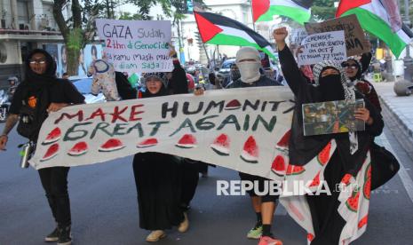 Aksi tersebut menyerukan agar masyarakat memboikot produk yang terafiliasi dengan Israel dan hentikan genosida kepada warga Palestina.