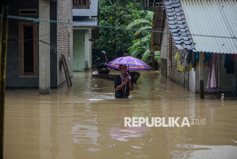 REPUBLIKA.CO.ID, SERANG -- Warga berjalan menerobos banjir di Kampung Kajaroan, Cinangka, Kabupaten Serang, Banten, Kamis (18/12/2025).