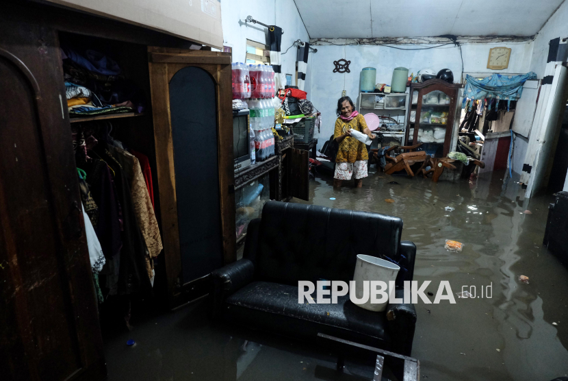 Warga membersihkan dan menyelamatkan perabot rumahnya yang terendam banjir di Kampung Gambiran, Kabupaten Sukoharjo, Jawa Tengah, Rabu (15/4/2026). Badan Penanggulangan Bencana Daerah (BPBD) Jawa Tengah mencatat sebanyak 14 desa di Kabupaten Sukoharjo mengalami banjir akibat curah hujan tinggi pada Selasa (14/4/2026). (FOTO : ANTARAFOTO/Maulana Surya)
