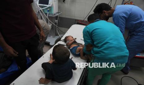REPUBLIKA.CO.ID, GAZA -- Anak Palestina yang terluka akibat serangan udara Israel mendapatkan perawatan di Khan Younis, Gaza, Ahad (19/10/2025).