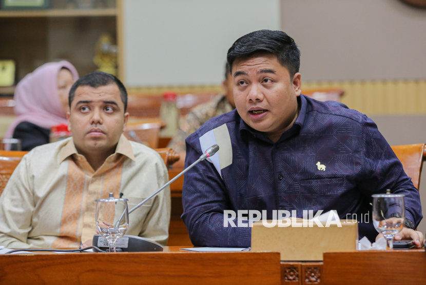 Anggota Komisi VI Kawendra Lukistian (kanan) mengikuti Rapat Dengar Pendapat Umum (RDPU) terkait kasus videografer Amsal Christy Sitepu yang dituduh melakukan korupsi anggaran proyek video profil desa di Kompleks Parlemen, Senayan, Jakarta, Senin (30/3/2026). Komisi III DPR menyatakan secara substantif kerja kreatif videografer tidak memiliki harga tertentu sehingga tidak bisa dikatakan terjadi penggelembungan atau mark up dari harga baku serta menyerukan agar Majelis Hakim mempertimbangkan putusan bebas atau setidaknya ringan berdasarkan fakta persidangan. (FOTO : Republika/Thoudy Badai)