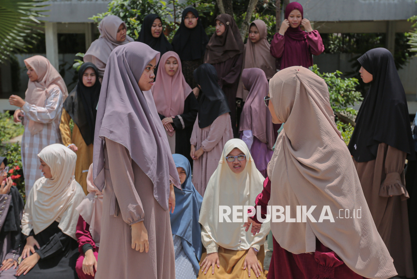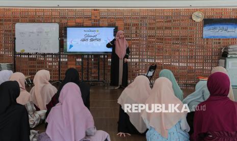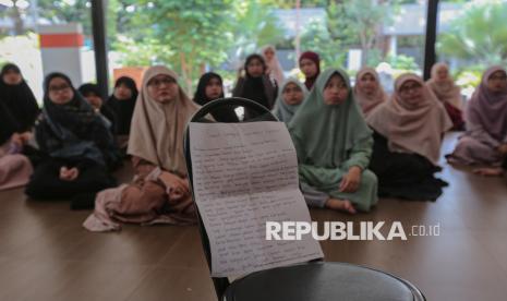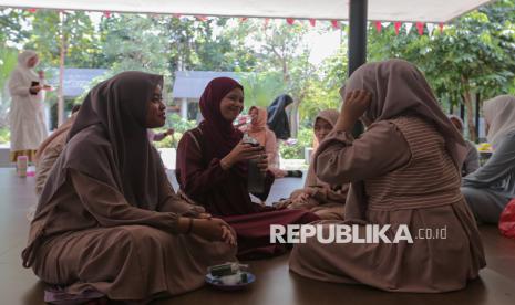 Santriwati penyandang tunarungu beraktivitas di Pesantren Tahfiz Difabel, Lebak Bulus, Jakarta, Rabu (22/10/2025). (FOTO : Republika/Thoudy Badai)