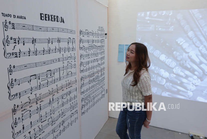 REPUBLIKA.CO.ID, JAKARTA -- Pengunjung mengamati karya arsip dalam pameran PustaKarsa 2025 di Taman Ismail Marzuki (TIM), Jakarta, Selasa (14/10/2025).
