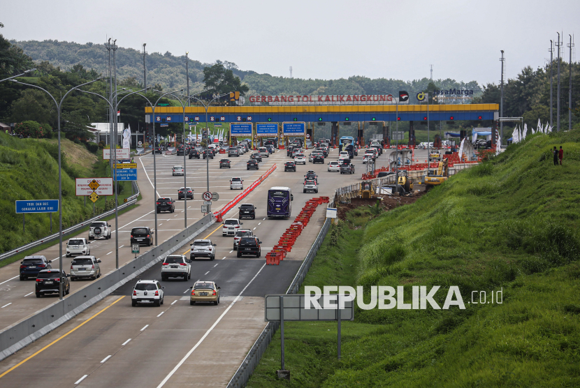 REPUBLIKA.CO.ID, SEMARANG -- Sejumlah kendaraan pemudik antre saat penerapan skema satu arah di Gerbang Tol (GT) Kalikangkung, Semarang, Jawa Tengah, Selasa (24/3/2026).