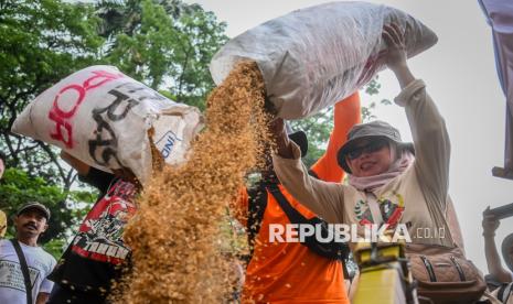 REPUBLIKA.CO.ID, JAKARTA -- Pengunjuk rasa melakukan aksi Hari Pangan Sedunia di Jalan Medan Merdeka Selatan, Jakarta, Kamis (16/10/2025).