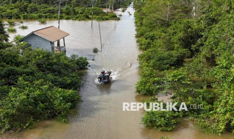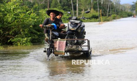 REPUBLIKA.CO.ID, ACEH BARAT -- Pengendara melintasi jalan yang terendam banjir di Desa Layung, Bubon, Aceh Barat, Aceh, Selasa (21/10/2025).