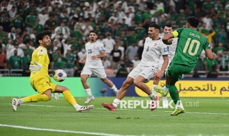REPUBLIKA.CO.ID, JEDDAH -- Arab Saudi berhadapan dengan Irak saat pertandingan kualifikasi Piala Dunia 2026 putaran keempat Grup B sepak bola Asia di Stadion Alinma Bank di King Abdullah Sports City, Jeddah, Arab Saudi, Rabu (15/10/2025).