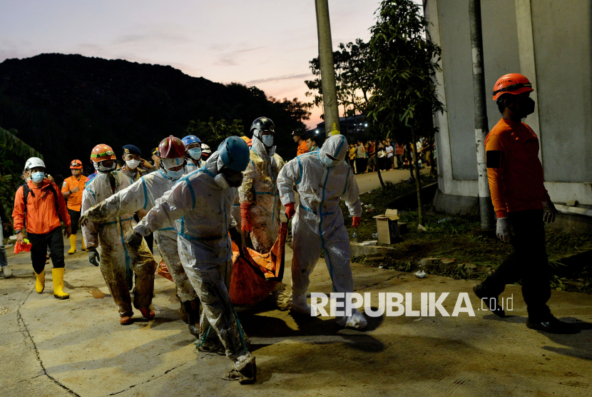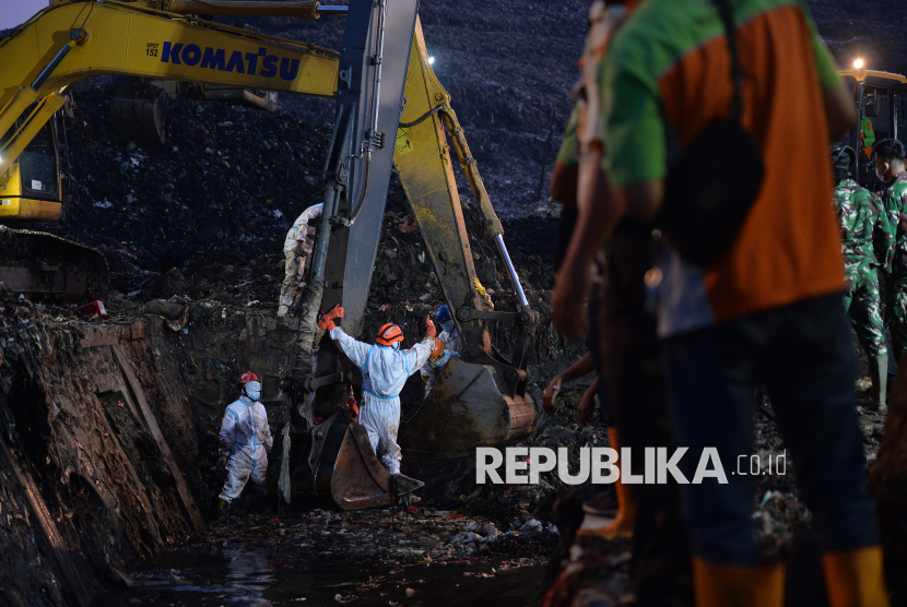 REPUBLIKA.CO.ID, BEKASI Tim SAR gabungan mengevakuasi jenazah korban longsor di Tempat Pengolahan Sampah Terpadu (TPST) Bantargebang, Bekasi, Jawa Barat, Senin (9/3/2026).