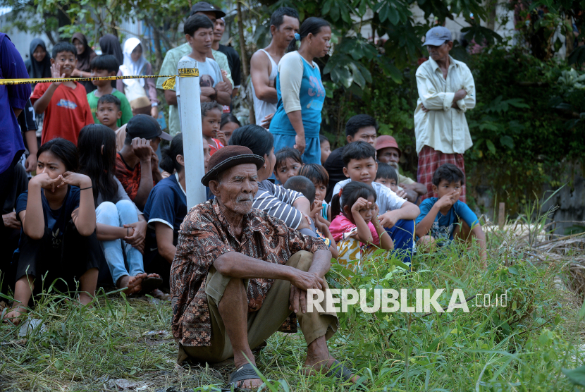 Warga menyaksikan proses pencarian korban longsor di Tempat Pengolahan Sampah Terpadu (TPST) Bantargebang, Bekasi, Jawa Barat, Senin (9/3/2026). Berdasarkan data sementara dari Basarnas DKI Jakarta pada Senin (9/3) sore, sebanyak enam orang meninggal dunia dan satu lainnya masih dalam proses pencarian akibat longsor di TPST Bantargebang yang terjadi pada Ahad (8/3). (FOTO : Edwin Putranto/Republika)